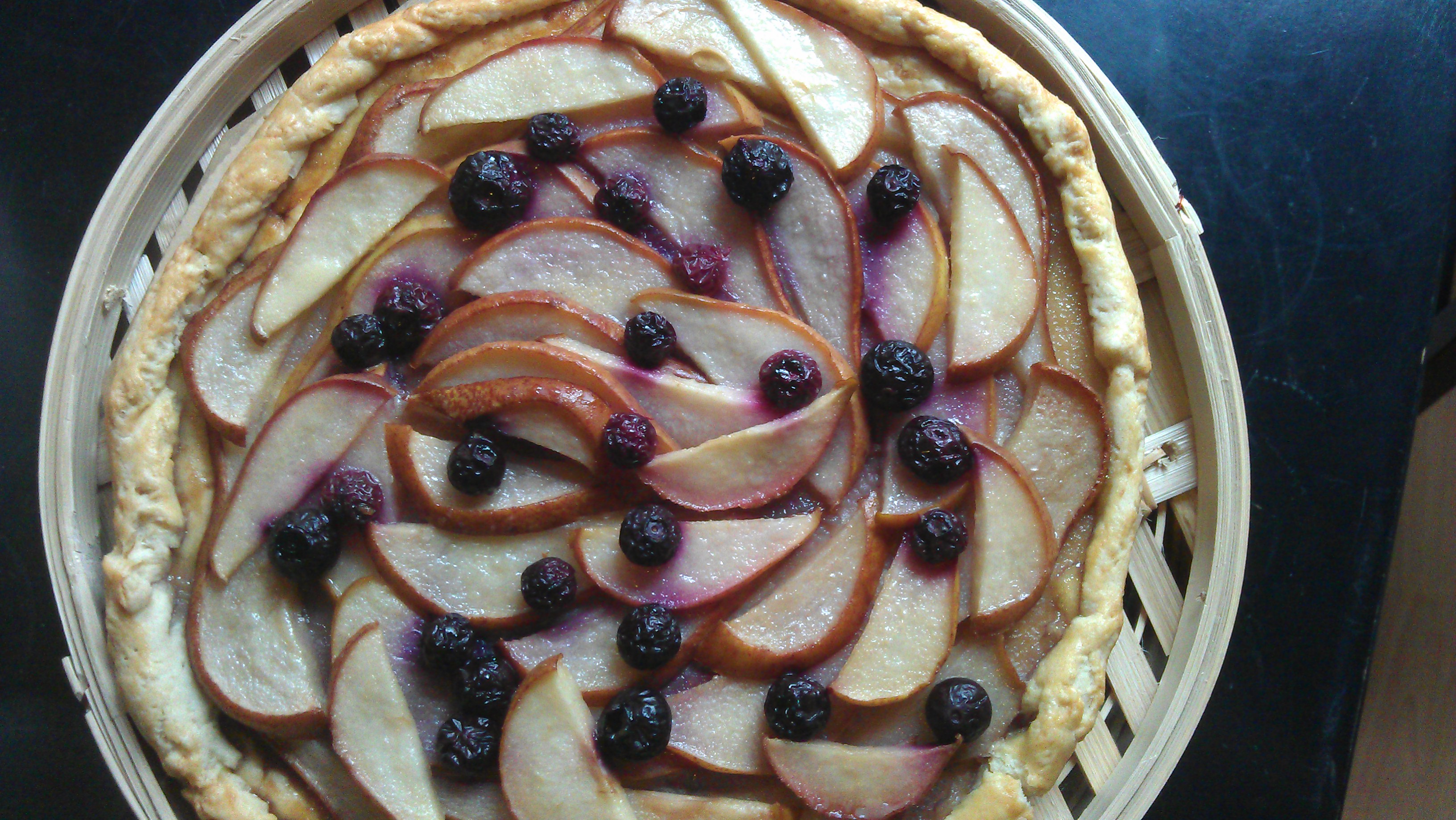 A fresh butter crust topped with brown-sugar glazed pears and blueberries. (Pictured above) |