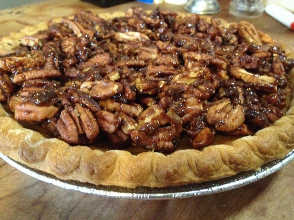 This year, Cole and I made a relatively traditional apple pie with crumble top, and went all out with a second pie – pumpkin with candied pecans on top. Sounds amazing, right? Here are some shots:
